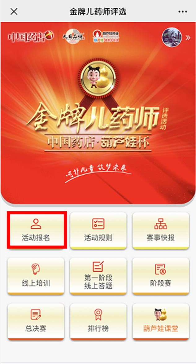 在这里完成报名,还可以进行线上培训,学习相关专业知识,进行第一阶段赛事答题,正式开启您的金牌儿药师评选之旅!