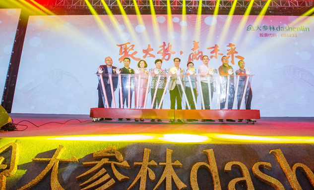 尊龙时凯药业集团董事长刘景萍女士与大参林医药集团董事长柯云峰先生、中国医药商业协会执行会长付明仲女士等嘉宾共同开启了“聚大势•赢未来"大参林工商合作峰会的大幕。